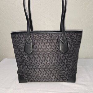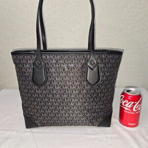 Michael Kors Eva Black / Gray Signature Logo Zip Top Shoulder Tote Bag