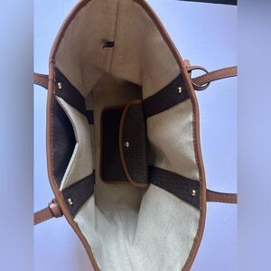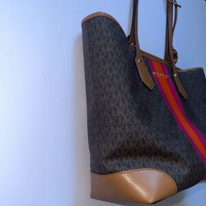 Michael Kors Eva Large Signature Logo Orange & Pink Stripe Tote Bag w/clutch