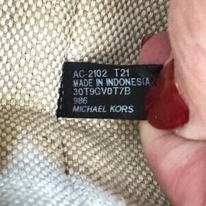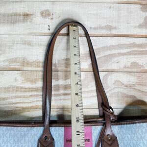 Michael Kors Eva Large Tote White/Ivory Pink Stripe Coated Canvas Purse Bag