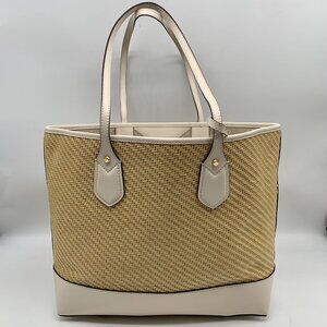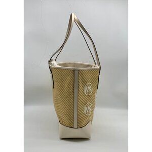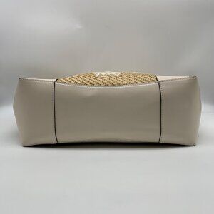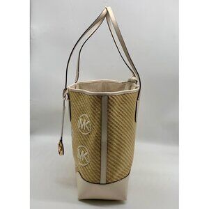 Michael Kors Eva Large Woven Straw and Cream Leather Trim Tote Bag with Leather