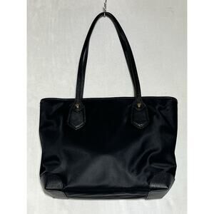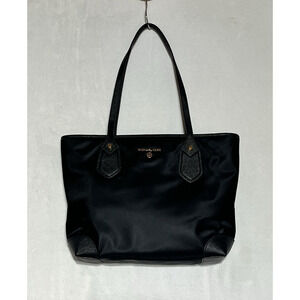 Michael Kors Eva Tote Black Nylon Zip Top Shoulder Bag Handbag Gold Tone Logo