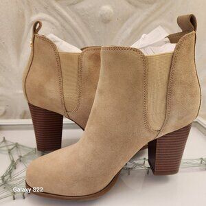 Michael Kors Evaline Brown Suede Chelsea Heeled Booties Size 6M. NIB