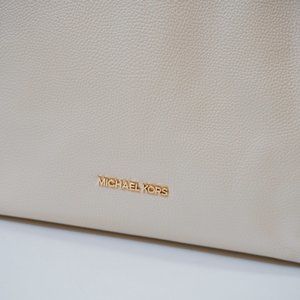 Michael Kors Evie Large Shoulder Hobo Pebbled Leather Bag Light Cream