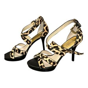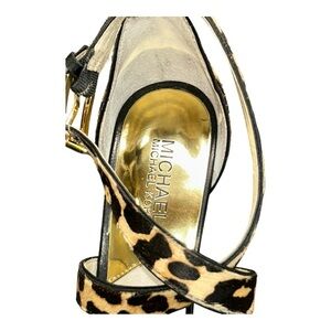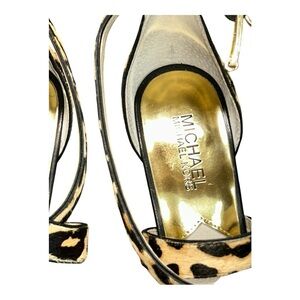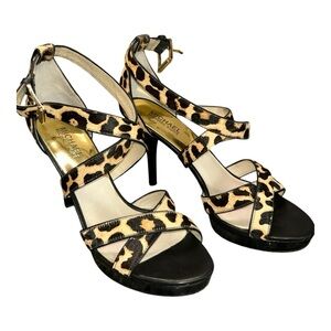 Michael Kors Evie Platform Leopard Print Strappy Heels Women’s Size 9.5 Real Fur