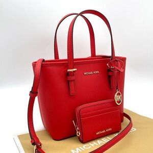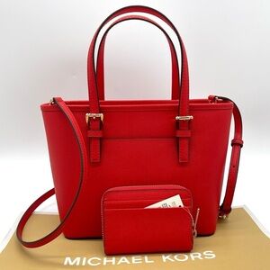 Michael Kors Extra Small To Zip Tote Bag & Medium Card Case Wallet Dark Sangria