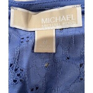 Michael Kors Eyelet Lace Ruffle Short Sleeve Blue Women V Neck Floral Medium