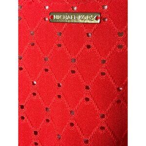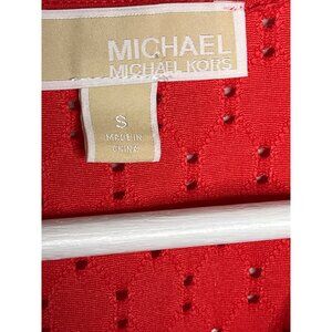 Elevate your wardrobe with this stunning Michael Kors short sleeve blouse in a vibrant orange eyelet fabric. Featuring a flattering V-neckline, delicate puff sleeves, and a relaxed silhouette, this top is perfect for pairing with jeans or trousers for a polished, feminine look. Lightweight and breathable, it transitions effortlessly from casual outings to office-ready style.