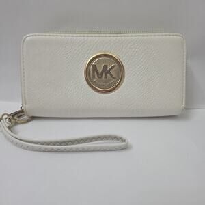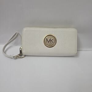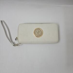 Michael Kors FULTON 7”x4” Leather Phone Case Wallet Wristlet Zip Around CREAM