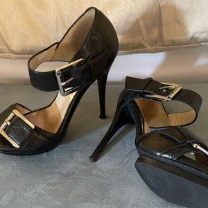 Michael Kors "Faith" Double-Strap Pebbled Black Leather Stiletto Heels Size 8M