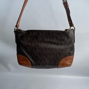 Michael Kors Fallon Leather and Canvas Monogram Shoulder Bag
