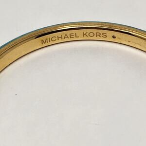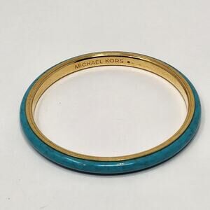 Michael Kors faux turquoise gold tone thing bangle bracelet. Signed Designer Fashion Jewelry Stacking layering Southwestern Preppy Boho