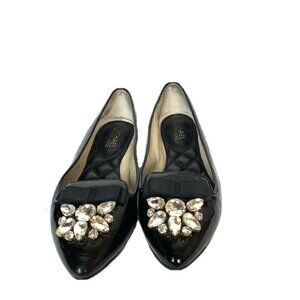 Pointed closed-toe flats with jewel embellishments at the toe.