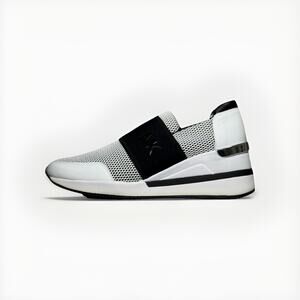 Michael Kors Felix Trainer Knit Slip-On Sneakers White Black Women’s 8.5M MK