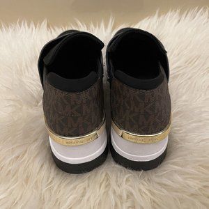 Michael Kors Felix Trainer Platform Wedge Monogram Brown Logo NEW