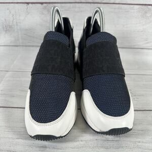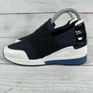 Michael Kors Felix Trainer Slip-on Wedges Flat Sneakers Black/White Blue Sz.7.5