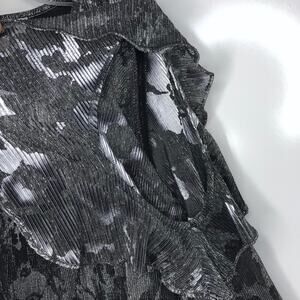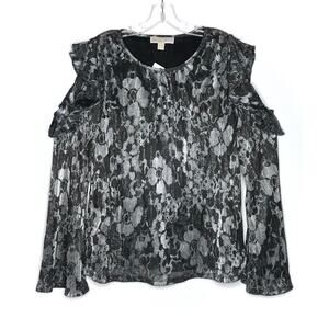 Michael Kors Floral Ruffle Metallic Cold Shoulder Top Women's S