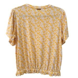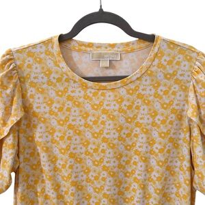 Michael Kors Floral Short-Sleeve Shirt Blouse Tulip Sleeves Yellow White Sz L