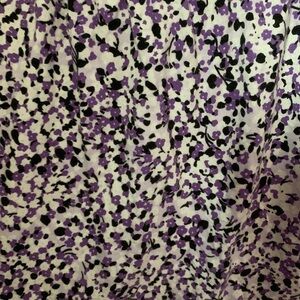 White, purple, and black floral print
