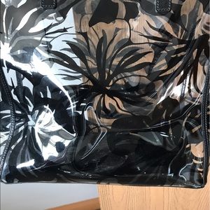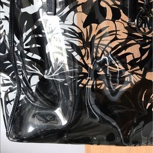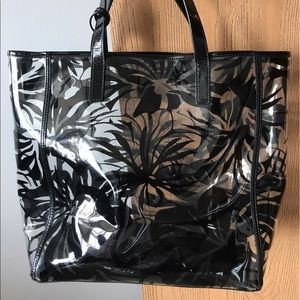 Michael Kors floral transparent tote that is super cute and roomy. There is wear and tear throughout the bag but it still has a lot of life.