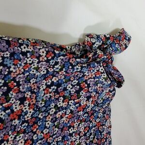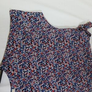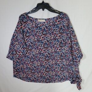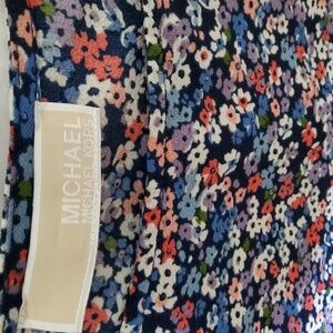 Michael Kors floral top features a vibrant mix of colors, side slit with tie short sleeves missing Size tag pit- pit flat 32" Shoulder to waist 26"