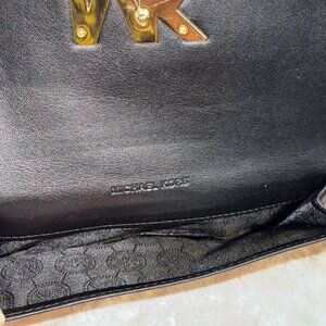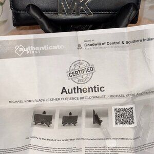✨ Michael Kors Florence Black Leather Bifold Wallet – AUTHENTIC – Gold MK Logo ✨