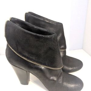 Michael Kors Fold Over Zippered Back Black Leather Women's Heeled Boots Size 9M