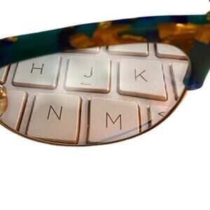 These stylish Michael Kors cat eye frames are a beautiful teal color with gold accents. They're perfect for adding a touch of sophistication to any look. Frame is in great condition. Grab them now before they're gone!