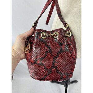 Michael Kors Frankie Crossbody Bag Red Black Snakeskin Print Small Pouch Bucket