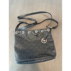 Michael Kors Frankie Drawstring Bag Black 1409 30H4SFKL3B. There is some wear on the handle strap. One mark on inside and a few small marks on bottom all shown in pictures