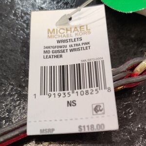 Vibrant fuchsia wristlet with gold perforations. Sleek and modern design. Ideal for essentials.