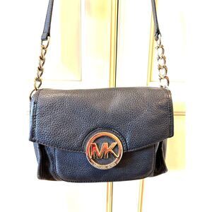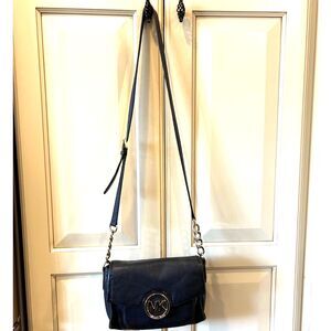 Classic and chic Michael Kors crossbody bag with gold hardware. The bag is in excellent preowned condition. Measures 8"w x 7"H. Adjustable crossbody strap.