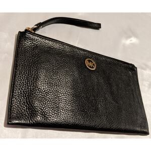 Michael Kors Fulton Black Pebbled Leather Wristlet Clutch Gold Logo 10" x 5.5"