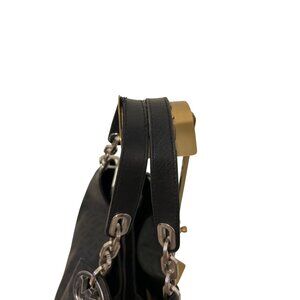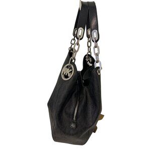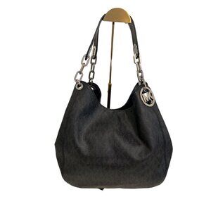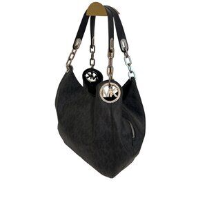 Michael Kors Fulton Black Shoulder Hobo Bag w Silver Chain Strap