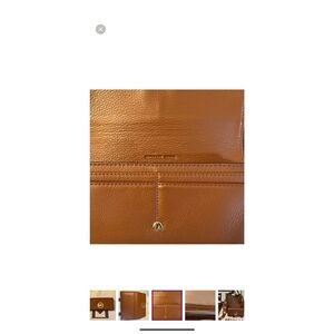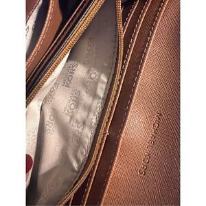Michael Kors Fulton Carryall Leather Wallet Camel Brown Gold Hardware Classic