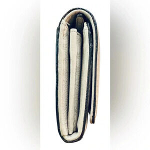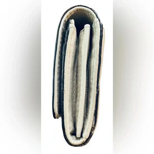 There are scratches to the front hardware and three pen marks on the inside of the flap. Other than those callouts this wallet is in excellent condition. Please review the photographs as they are part of the description.