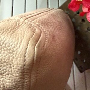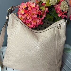 Michael Kors pebble leather light pink Crossbody within adjustable strap and large Michael Kors belt buckle on the side! Interior is the signature Michael Kors in tan, has one super pocket on one side and two slip packets on the other this purse comes from a smoke free home