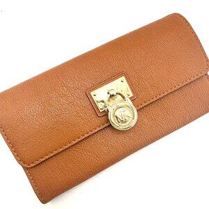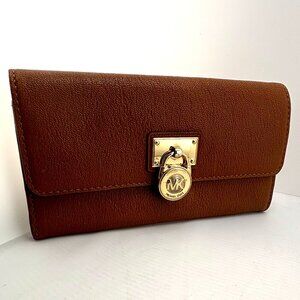 Michael Kors Fulton Hamilton Leather Flap Wallet Brown Gold Lock