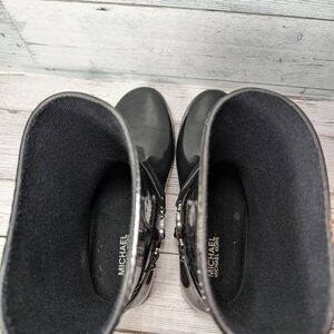 Michael Kors Fulton Harness Black Glossy Ankle Rain Boots Size 9 Women's CO15F