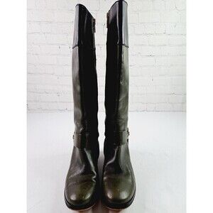 Michael Kors Fulton Harness Riding Boots Green Leather Logo Knee-High Size 7M.