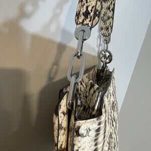 Michael Kors Fulton Large Hobo Bag Snakeskin Embossed Leather Cream Black Purse