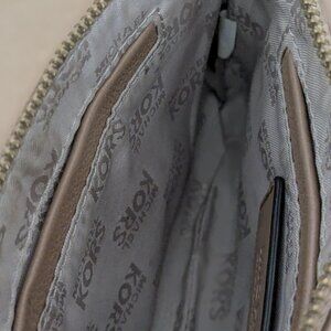 Michael Kors Fulton Leather Wristlet Mini Clutch BIG MK Shiny GOLD LOGO Brown . Good Condition.
