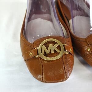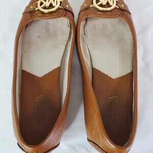Michael Kors Fulton Moc Ballet Flat Shoes Sz 9M Saffiano Leather Tan Slip On