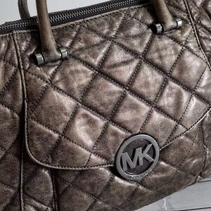 Michael Kors Fulton Quilted Top Handle Satchel in Bronze Metallic