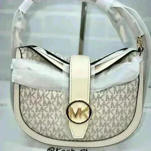 Michael Kors Gabby Crossbody Bag Small Signature Logo Hobo Purse Light Cream Mlt