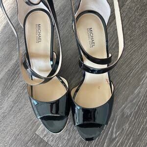 Michael Kors Gabriella Black Patent Leather Espadrille Wedges Platform Sandals