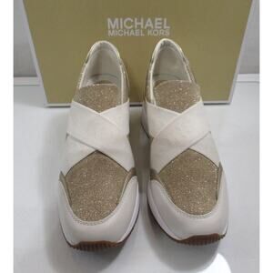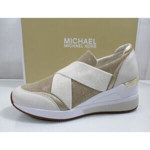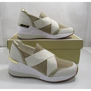 Michael Kors Geena Slip On Trainer Wedge Sneakers MK Logo Pale Gold