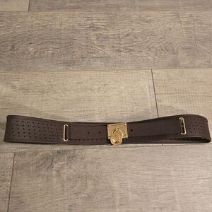Michael Kors Genuine Brown Leather Perforated Belt Logo Lock Buckle L