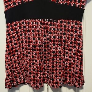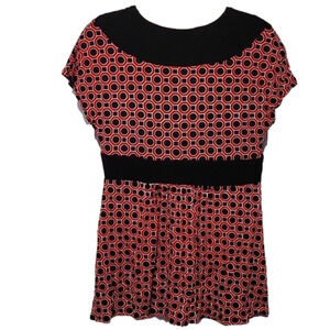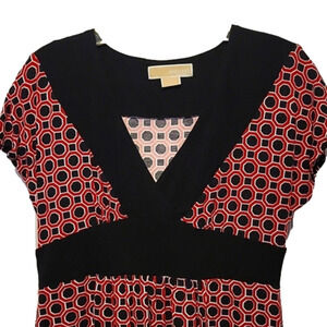 Beautiful Michael Michael Kors Top in Small Petite. Super flattering cut and short sleeves. Dress it up or down. It is black with a Cranberry color. 95% Rayon and 5% Spandex.