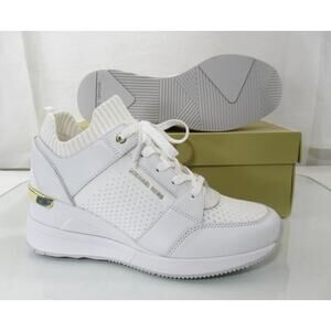 Michael Kors Georgie Knit Trainer Wedge Sneakers MK Logo Optic White Size 9.5