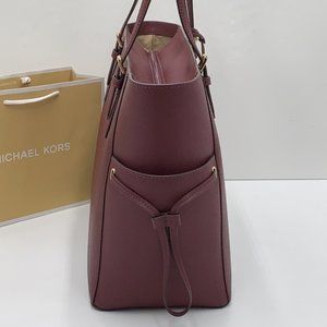 Michael Kors Gilly Large Drawstring Travel Tote Leather Oxblood Color